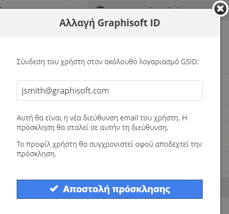 Ο χρήστης λαμβάνει ένα email πρόσκλησης που περιέχει έναν σύνδεσμο σύνδεσης. Η σύνδεση του νέου GSID παραμένει σε κατάσταση εκκρεμότητας έως ότου ο χρήστης αποδεχθεί την πρόσκληση.