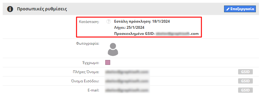 Η πρόσκληση στάλθηκε, αλλά έχει λήξει. Ο σύνδεσμος αποδοχής στο email ΔΕΝ θα λειτουργεί πλέον. Μπορείτε να πατήσετε το κουμπί “Σύνδεση στο GSID” και να ξαναστείλετε την πρόσκληση.