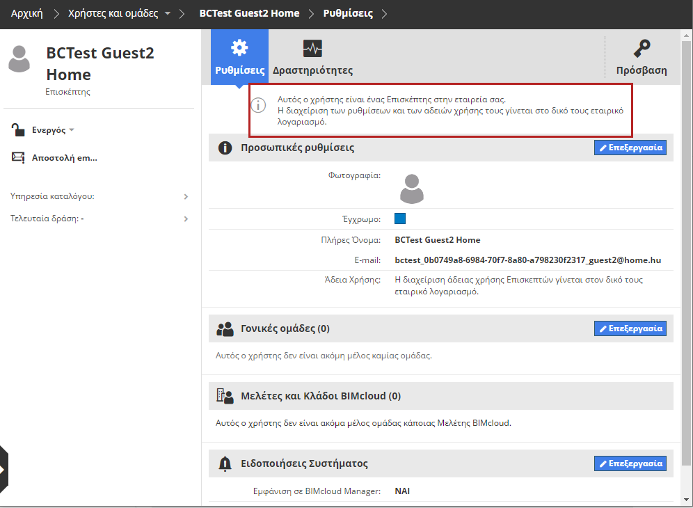 - μπορεί να του ανατεθούν ρόλοι και πρόσβαση όπως σε οποιονδήποτε άλλο χρήστη BIMcloud