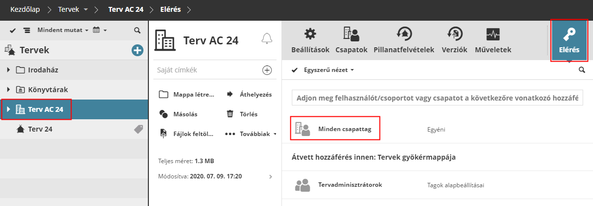 A csapatmappák megtekintésére és módosítására vonatkozó jogosultságok szükség szerint finomíthatók.