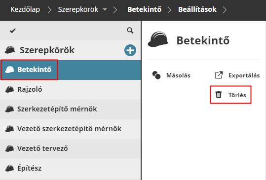 Egy vagy több szerepkör eltávolítása a BIMcloudból
