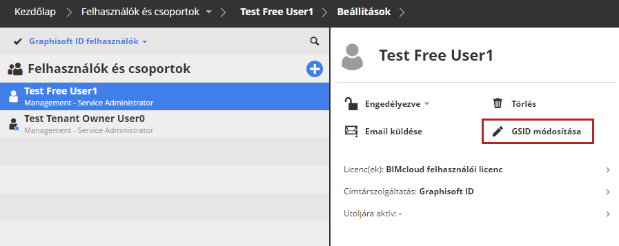 Meglévő BIMcloud felhasználó GSID-fiókjának módosítása