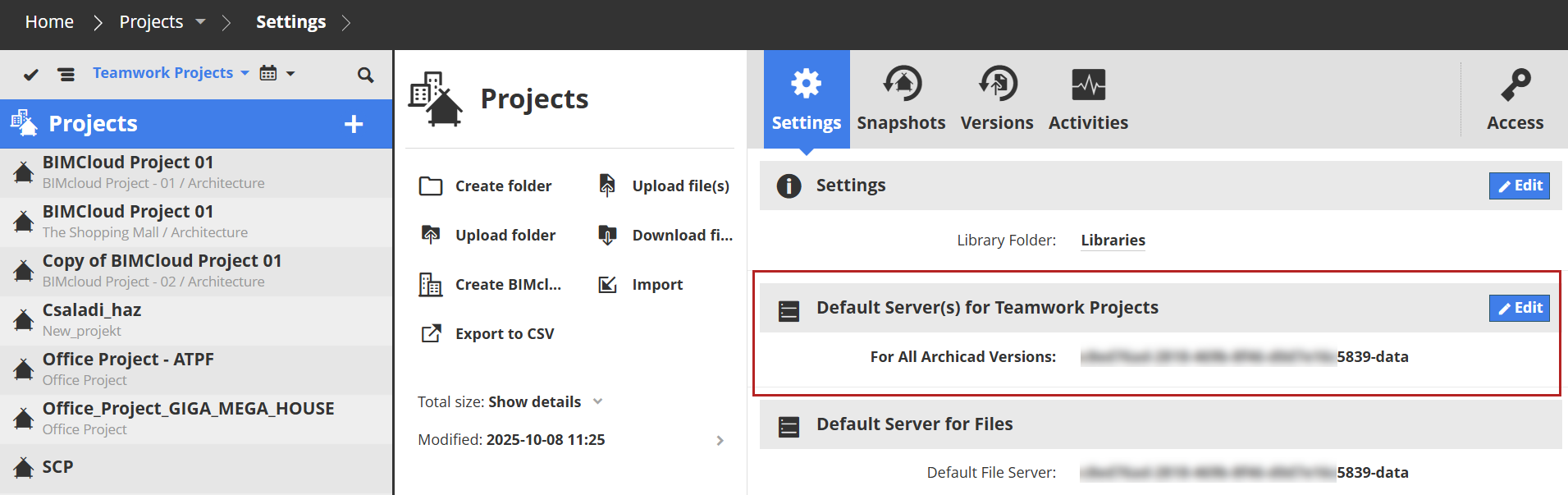 When a user shares a project from Archicad, and places it in the currently selected BIMcloud folder, the project will be automatically hosted by the BIMcloud Server chosen here.