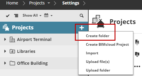 This function is available on the Projects page, if the root folder or any other folder is selected.