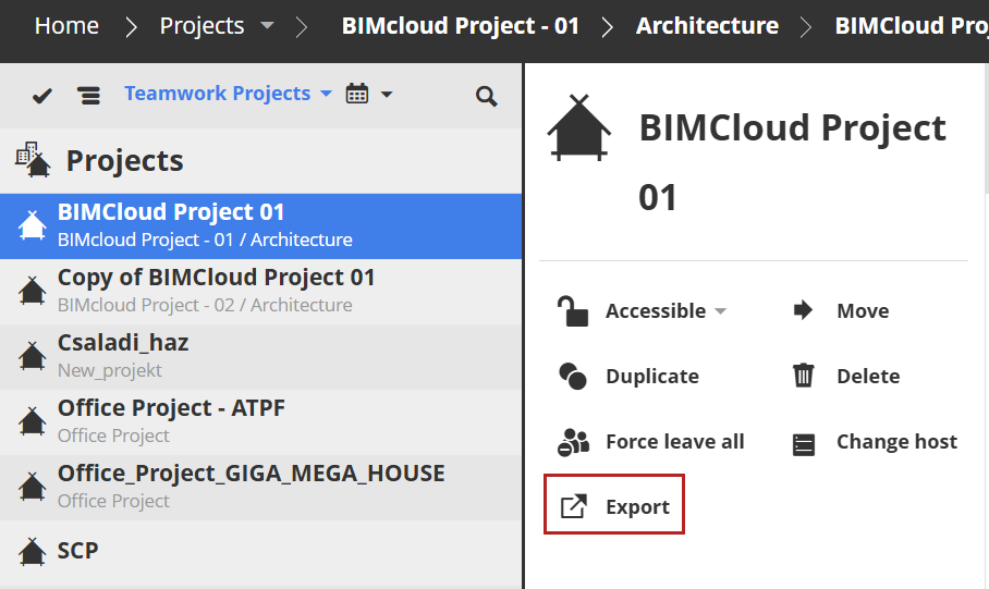 This function downloads a Teamwork Project or Library to your computer, with file format .BIMProject or .BIMLibrary).