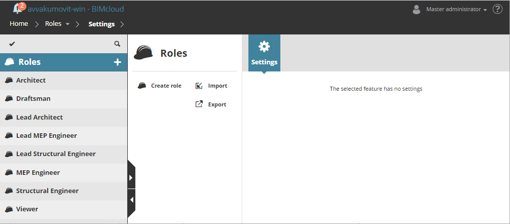 Roles are a set of permissions that describe what the owner of the role can do with specific element types or data types, both on the BIMcloud Manager or in Archicad Teamwork projects.