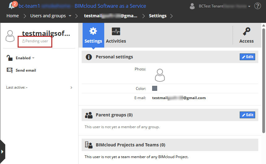 Even for “pending” users, the BIMcloud admin can go ahead and assign permissions, user group memberships, and other settings - no need to wait until the invitation is accepted.