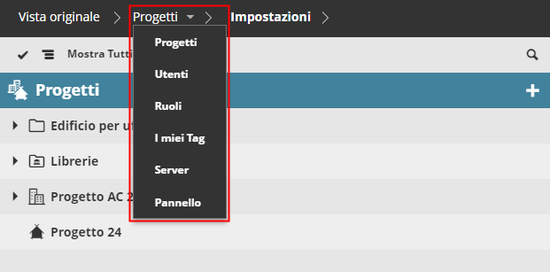 Passare da una pagina dei contenuti di BIMcloud all'altra