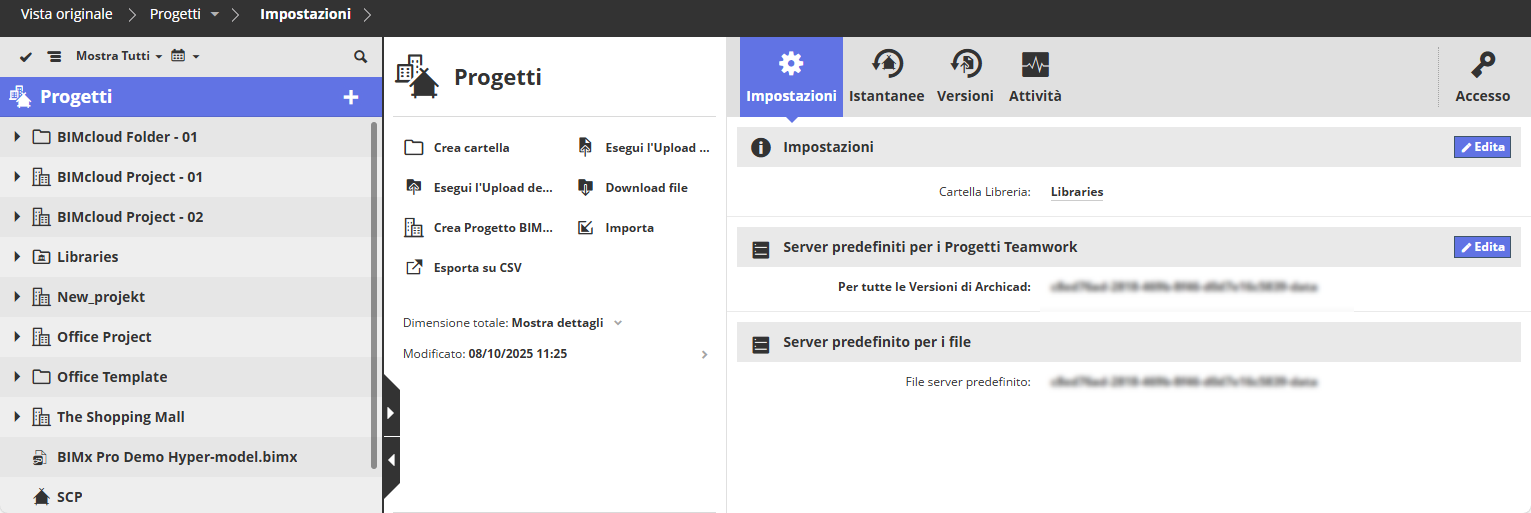 Progetti e file su BIMcloud