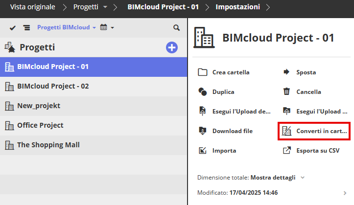 Convertire un Progetto BIMcloud in Cartella