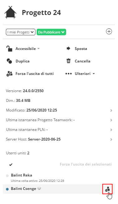Forzare l'uscita degli utenti dal Progetto Teamwork