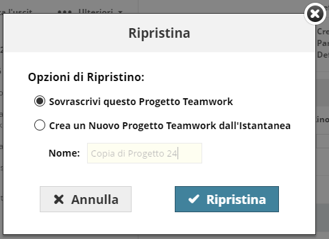 - Crea un nuovo progetto Teamwork/una nuova libreria dall'Istantanea: Il file istantanea selezionato sarà creato come un/a nuovo/a progetto/libreria separato/a sul server.
