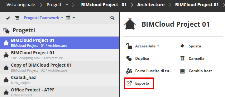 Scaricare un progetto Teamwork o una libreria dal BIMcloud sul proprio computer