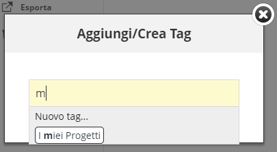 Iniziare a digitare il nome di un tag esistente (ad es. "I miei progetti") fino a quando il tag desiderato non compare nell'elenco sottostante. Fare clic per assegnare.