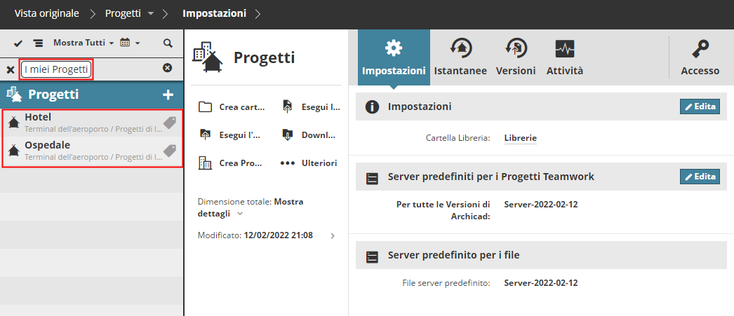 Aprire la pagina dei progetti di BIMcloud Manager.