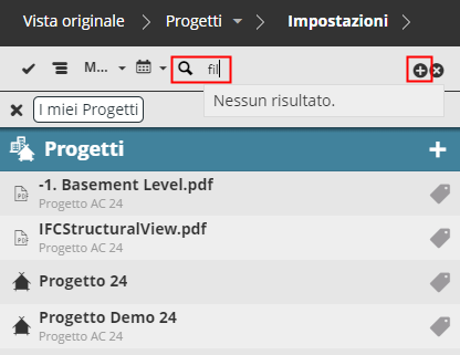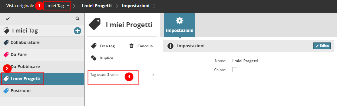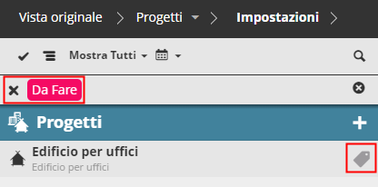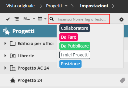Selezionare il tag per cui si desidera filtrare (per es. “I miei Progetti”).