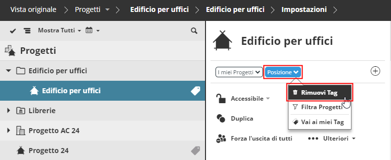 Dalla sezione sommario, fare clic sul tag che si desidera rimuovere.