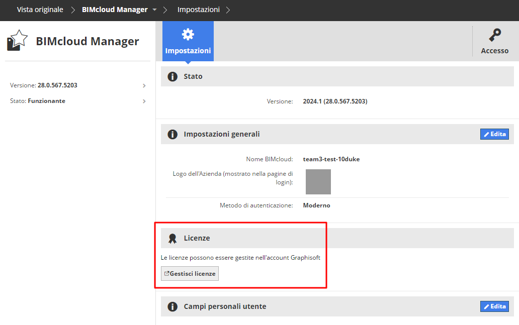 - Invece che dal BIMcloud Manager, la gestione delle licenze e degli utenti di BIMcloud si effettua nell'account aziendale.