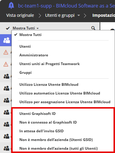 Controllare la pagina Utenti: Transizione degli utenti BIMcloud