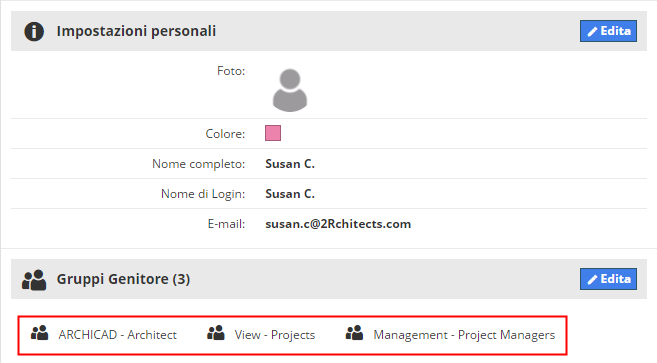 Per lavorare efficacemente in Teamwork, ogni nuovo utente deve essere aggiunto ad almeno due dei gruppi: uno dei gruppi Archicad e uno dei gruppi di Visualizzazione.