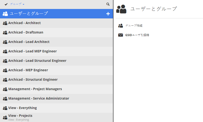 [管理]グループはBIMcloudへのアクセス権があり、プロジェクト、ライブラリ、ユーザーを管理できます。