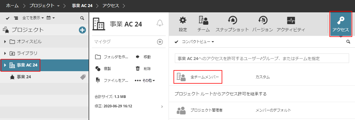 BIMcloudプロジェクトへ割り当て済みのチームに対する権限の定義