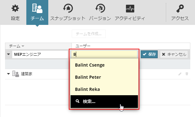 - チーム名(「MEPエンジニア」など)を入力し、[作成]をクリックします。