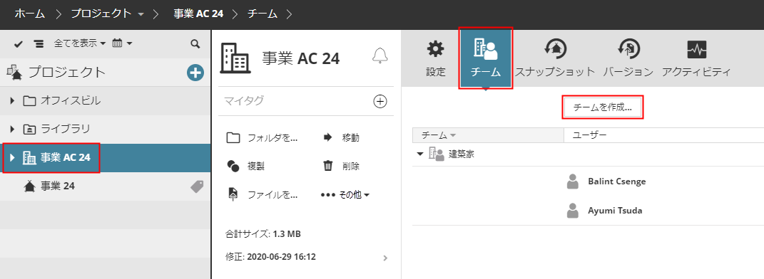 - BIMcloud Managerのプロジェクトページから、BIMcloudプロジェクトを選択します。