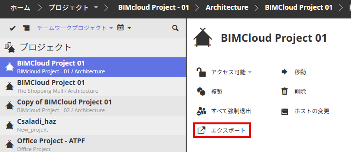 この機能を使用し、ファイル形式が.BIMProjectまたは.BIMLibraryのチームワークプロジェクトまたはライブラリをコンピュータにダウンロードします。