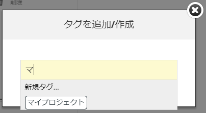 既存のタグの名前を入力し(例:「マイプロジェクト」)、下のリストに目的のタグが表示されるまで待ちます。クリックして割り当てます。