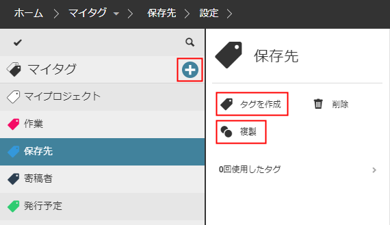 タグの作成または複製