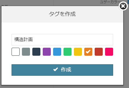 4. 10個のカラーボタンのいずれかをクリックして、それを新規タグに使用します。同じカラーを任意の数のタグに使用できます。