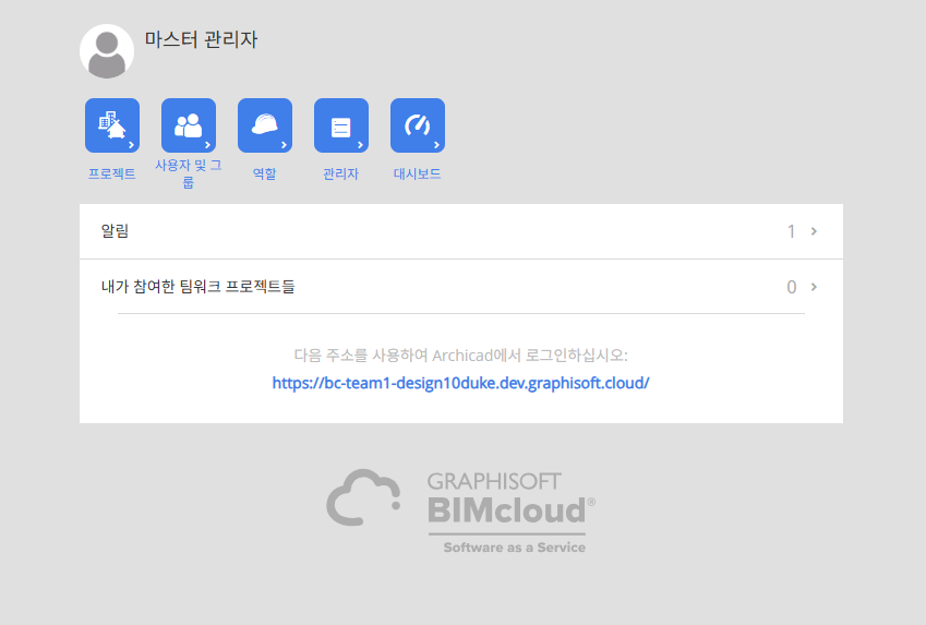 브라우저에서 BIMcloud Manager 인터페이스에 액세스하기