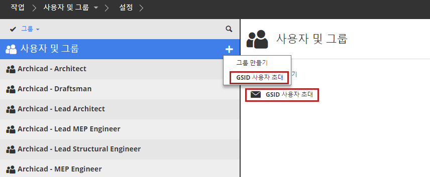 이 워크플로를 사용하여 GRAPHISOFT ID(GSID)를 통해 새 사용자를 BIMcloud에 초대합니다. (사용자는 이미 GSID를 보유하고 있어야 합니다.)