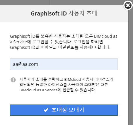 주:BIMcloud의 각 사용자는 고유한 GSID 이메일 주소를 가지고 있어야 합니다.