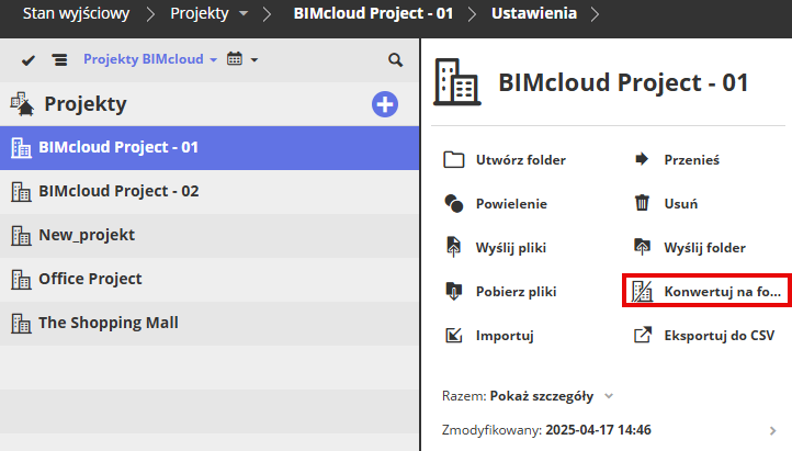 Konwersja Projektu BIMcloud do folderu