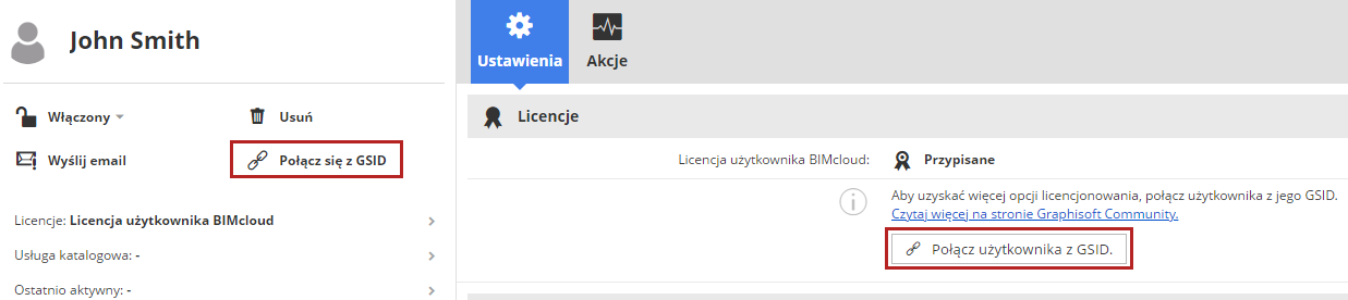 Używając tej procedury można połączyć istniejącego użytkownika BIMcloud z jego kontem GSID. Dzięki temu, dla użytkowników z GSID dostępnych jest więcej opcji licencyjnych.