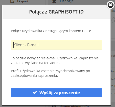 Kliknij Połącz z GSID (w panelu Podsumowanie lub Licencja w Ustawieniach użytkownika).