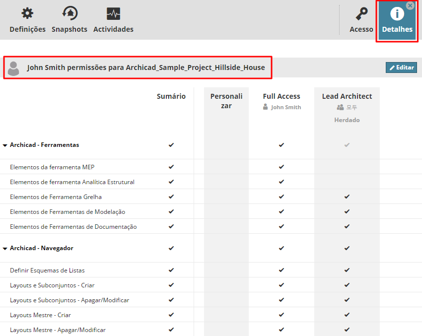 Veja quem tem acesso a cada item de conteúdo no BIMcloud Manager