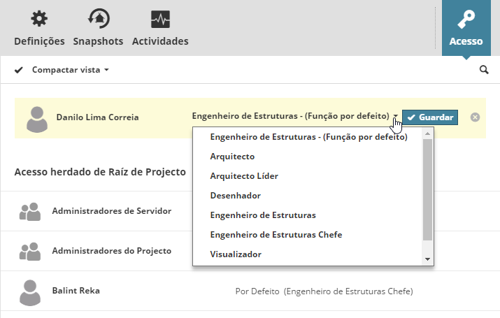 - Escolha uma função para o utilizador ou grupo seleccionado – isto define que função terá de ter para o item seleccionado. (Cada função é um conjunto de permissões. Definir e editar funções na página Funções.) Pode: