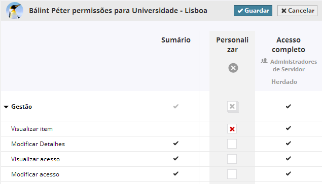 De modo idêntico, se tiver sido atribuído acesso a um utilizador para um item de conteúdo num nível superior na hierarquia, esta pode ser revogada num nível inferior apenas através da atribuição de uma Função personalizada ao utilizador.