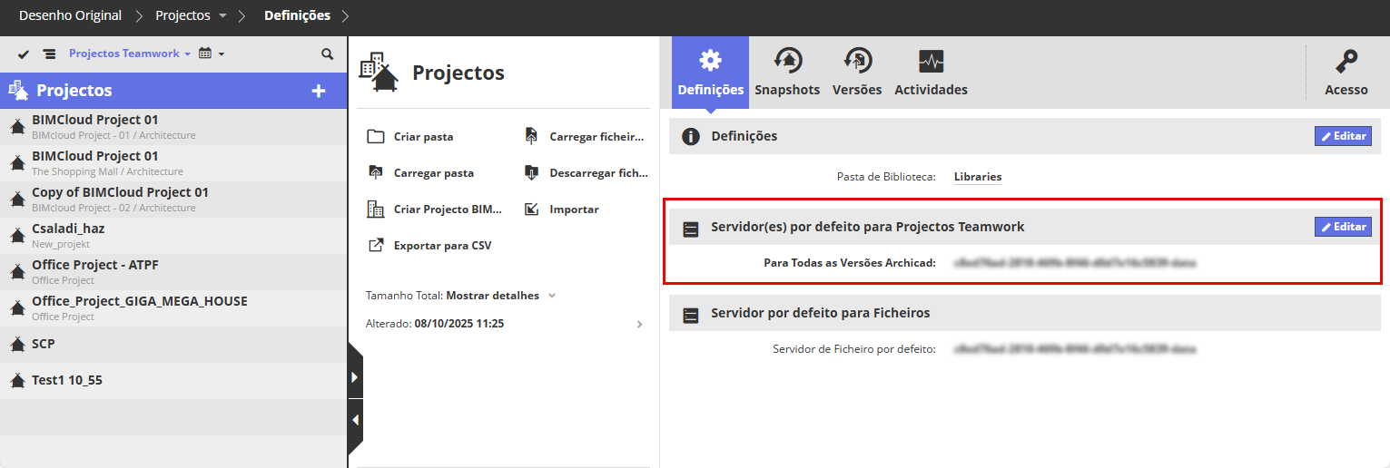 Quando um utilizador partilha um projecto do Archicad e o posiciona na pasta BIMcloud actualmente seleccionada, o projecto será automaticamente alojado pelo BIMcloud Server aqui seleccionado.