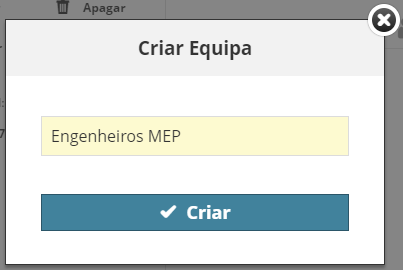 - Introduza um nome de Equipa (p. ex. "Engenheiros MEP”), a seguir clique em Criar.