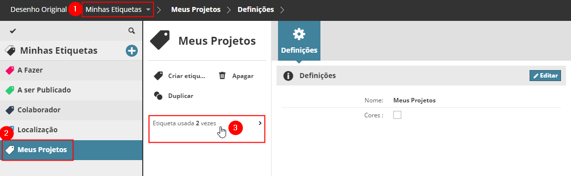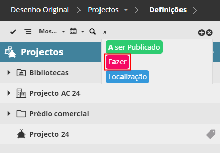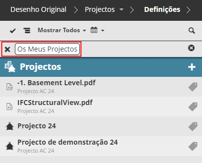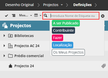 Seleccione a etiqueta que deseja filtrar (p. ex. "Meus Projectos").