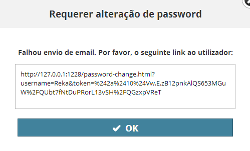 Se o BIMcloud Manager não estiver disponível para enviar o email, irá visualizar a ligação onde a password pode ser alterada. Envie este link para o utilizador ter de redefinir a password.