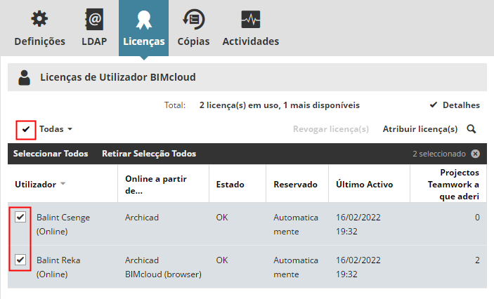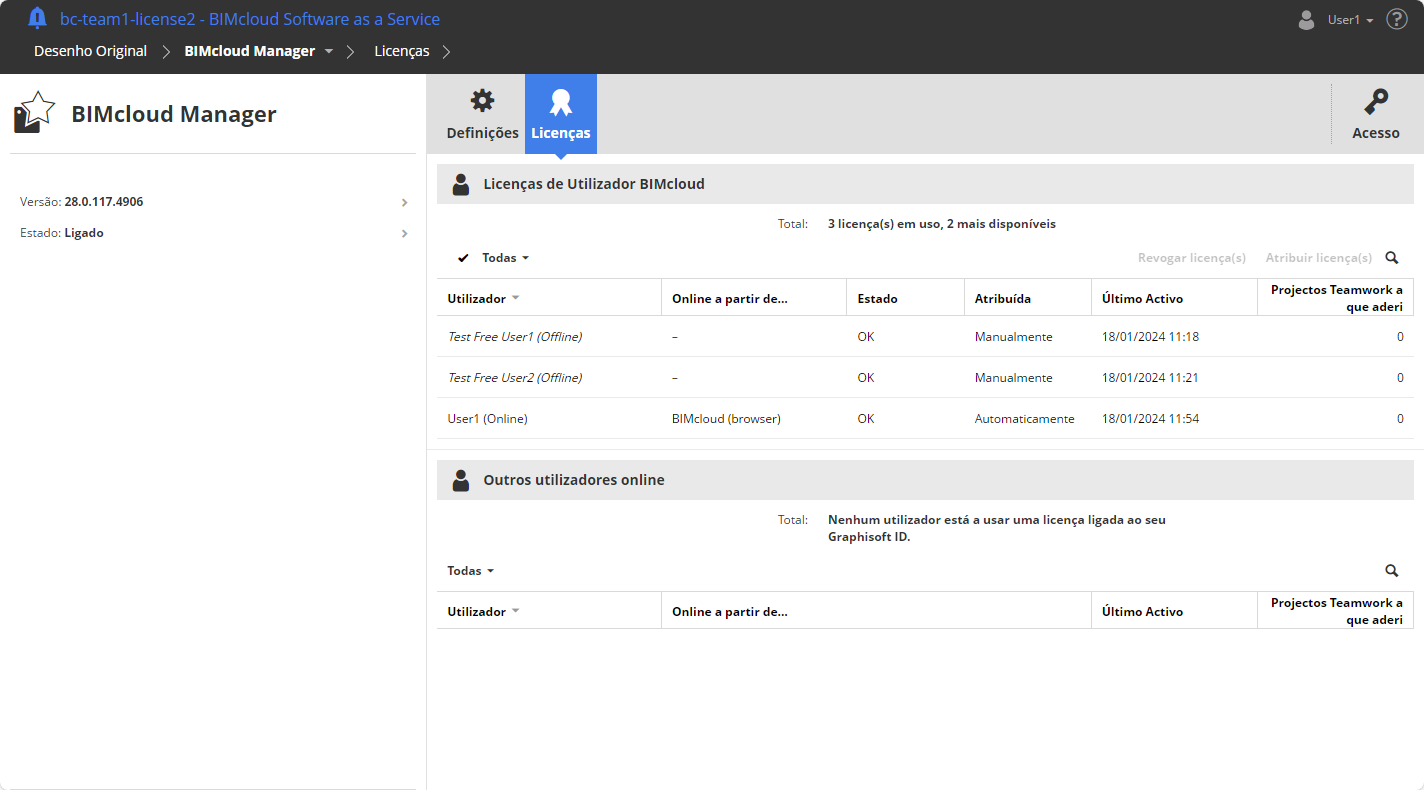 Veja também o artigo na Graphisoft Community:Atribuir licenças no BIMcloud as a Service