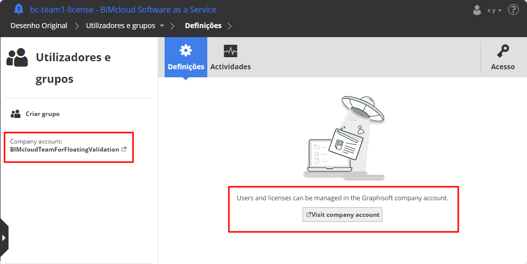 Para trabalhar no BIMcloud SaaS com licenças na nuvem, cada utilizador tem de ser membro da sua conta Empresa.