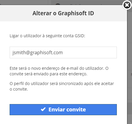 Na caixa de diálogo que aparece, introduza o novo e-mail da conta GSID.