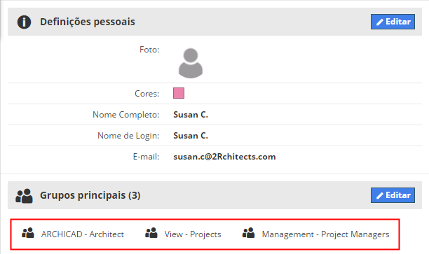 Para trabalhar eficazmente em Teamwork, cada novo utilizador deve ser adicionado a, pelo menos, dois dos grupos: um dos grupos do Archicad e a um dos grupos de Visualização.
