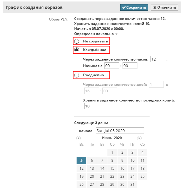 Ежедневно: образы будут создаваться ежедневно в заданное время.